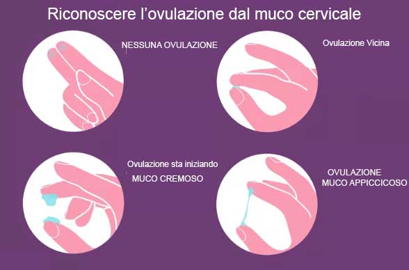 Nella fase di pre-ovulazione il muco è piuttosto denso, e se preso tra pollice e indice si allunga molto poco, o nulla, tendendo a spezzarsi subito. Successivamente, l’aumento degli estrogeni del sangue cambia poco a poco l’aspetto del muco. Nei giorni immediatamente precedenti all’ovulazione il muco diventa più liquido, trasparente e acquoso. Te ne accorgi perché se preso tra il pollice e l’indice il muco si allunga senza spezzarsi mai. Questa fase del muco è appena precedente all’ovulazione, avrai una sensazione di bagnato e lubrificato alla vagina. È consigliabile non prendere direttamente il muco con le dita, ma aspettare che esca da solo raccogliendolo con carta igienica. Il picco del muco è l’ultimo giorno in cui il muco ha un aspetto trasparente e liquido, è molto elastico e hai una sensazione di bagnato. L’ovulazione inizia il giorno del picco del muco, o nei tre giorni successivi. Sono i giorni in cui sei più fertile e puoi provare ad avere un bambino. Oppure, in base alle tue esigenze, sono i giorni in cui devi avere rapporti protetti, se vuoi evitare una gravidanza indesiderata. Ci sono diversi sintomi dell’ovulazione da tenere d’occhio, e il muco è soltanto uno di questi.
